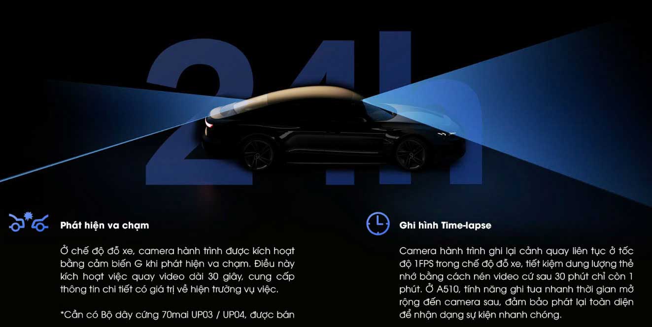 Khi xảy ra va chạm trong khi lái xe, camera hành trình sẽ bắt đầu ghi hình trước 5 giây và tiếp tục ghi trong 25 giây. Các video khẩn cấp sẽ được lưu riêng vào thư mục ‘sự kiện’ và sẽ không bị ghi đè bởi các bản ghi thông thường, cung cấp bản tái tạo hoàn chỉnh về vụ tai nạn.