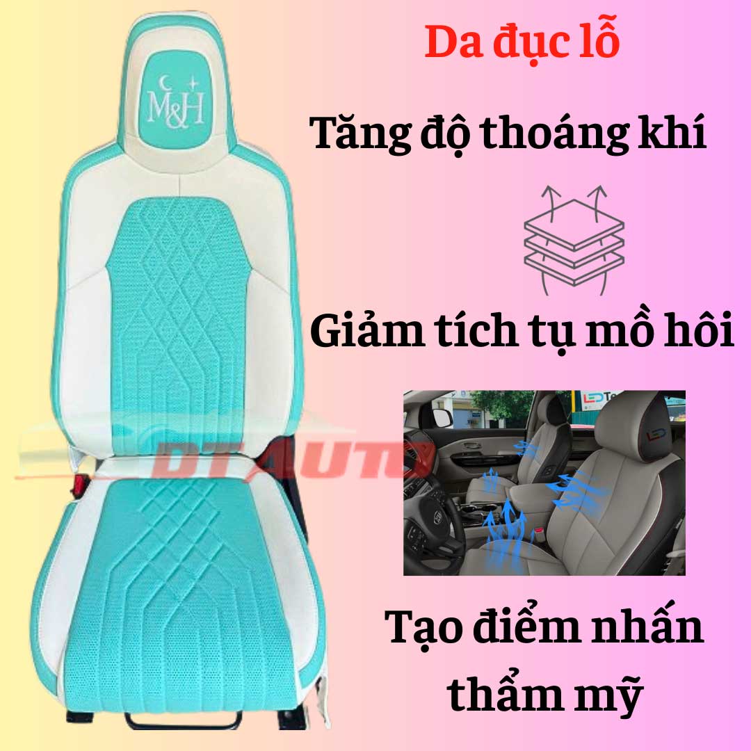 Trong số nhiều loại da được sử dụng, da đục lỗ là một trong những lựa chọn phổ biến và thực tế nhất. Da đục lỗ giúp ghế ngồi thông thoáng, giảm cảm giác nóng bí khi di chuyển đường dài và tạo điểm nhấn tinh tế cho không gian nội thất.