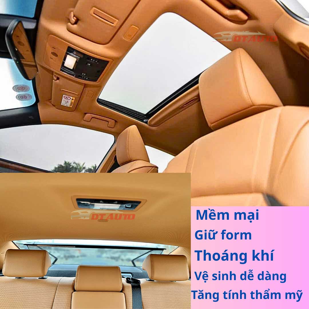 Bề mặt da mịn, không bám mực và dễ lau chùi bằng khăn mềm ẩm, giữ trần xe luôn sạch sẽ và sáng mới