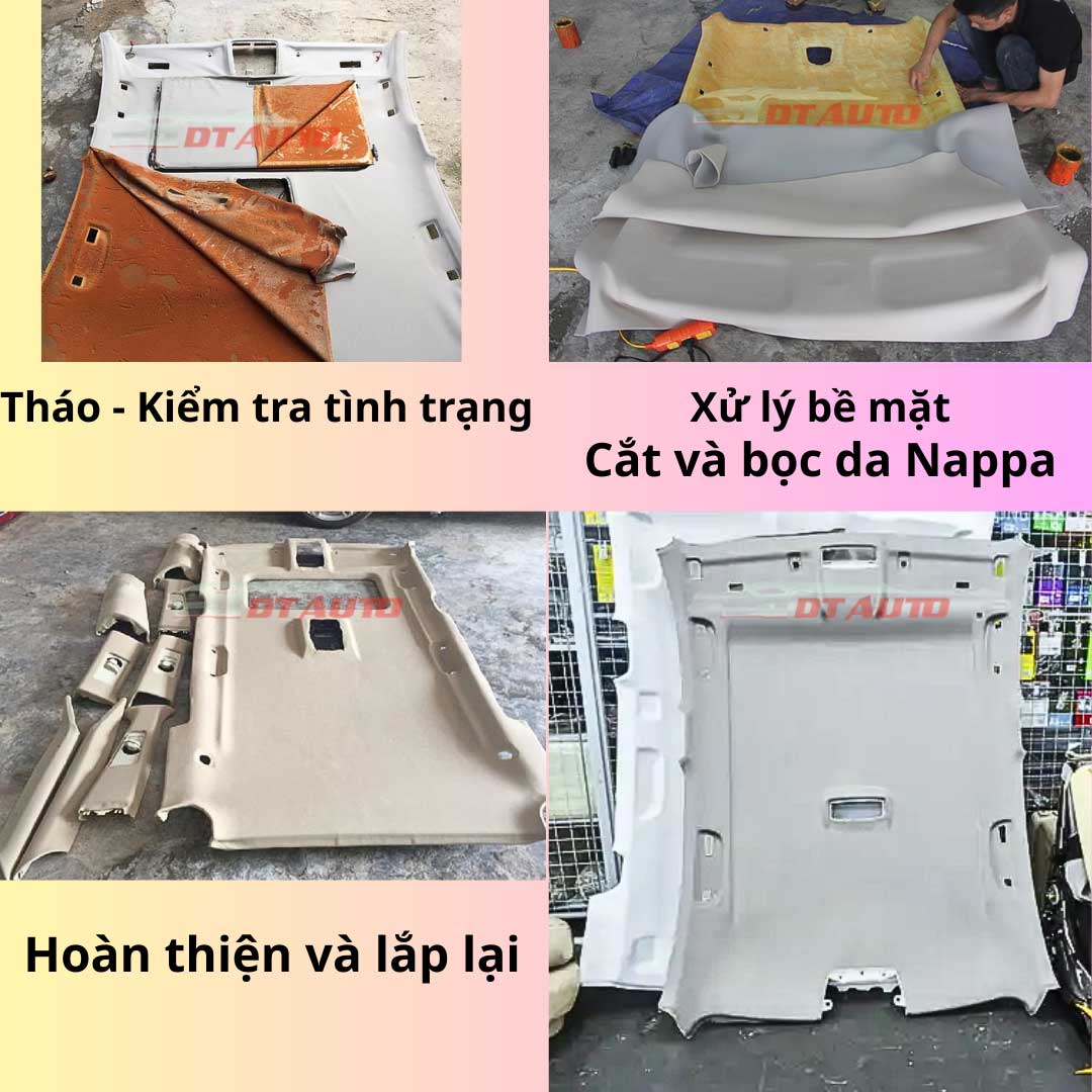 Tại DTauto – 730 Quốc lộ 13, Hiệp Bình, TP HCM (Hiệp Bình Phước, Thủ Đức cũ) dịch vụ bọc trần da Nappa được triển khai chuyên nghiệp, đáp ứng mọi yêu cầu về thẩm mỹ, độ bền và sự an toàn cho nội thất xe.