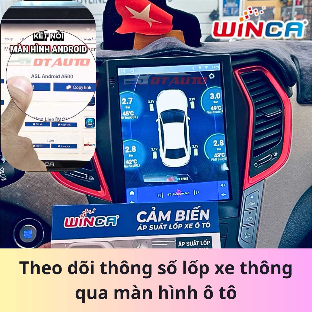 Cảm biến áp suất lốp A500 Winca là thiết bị cần thiết cho mọi tài xế, giúp giám sát tình trạng lốp liên tục, đảm bảo an toàn, tiết kiệm nhiên liệu và kéo dài tuổi thọ lốp. Với quy trình lắp đặt chuyên nghiệp, chế độ bảo hành tốt và hỗ trợ kỹ thuật tận nơi, DT Auto Thủ Đức là địa chỉ tin cậy để bạn trang bị sản phẩm này cho xế yêu của mình.