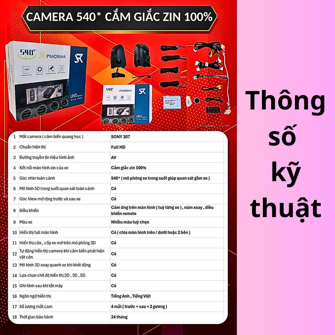 ● Góc nhìn toàn cảnh: 540°