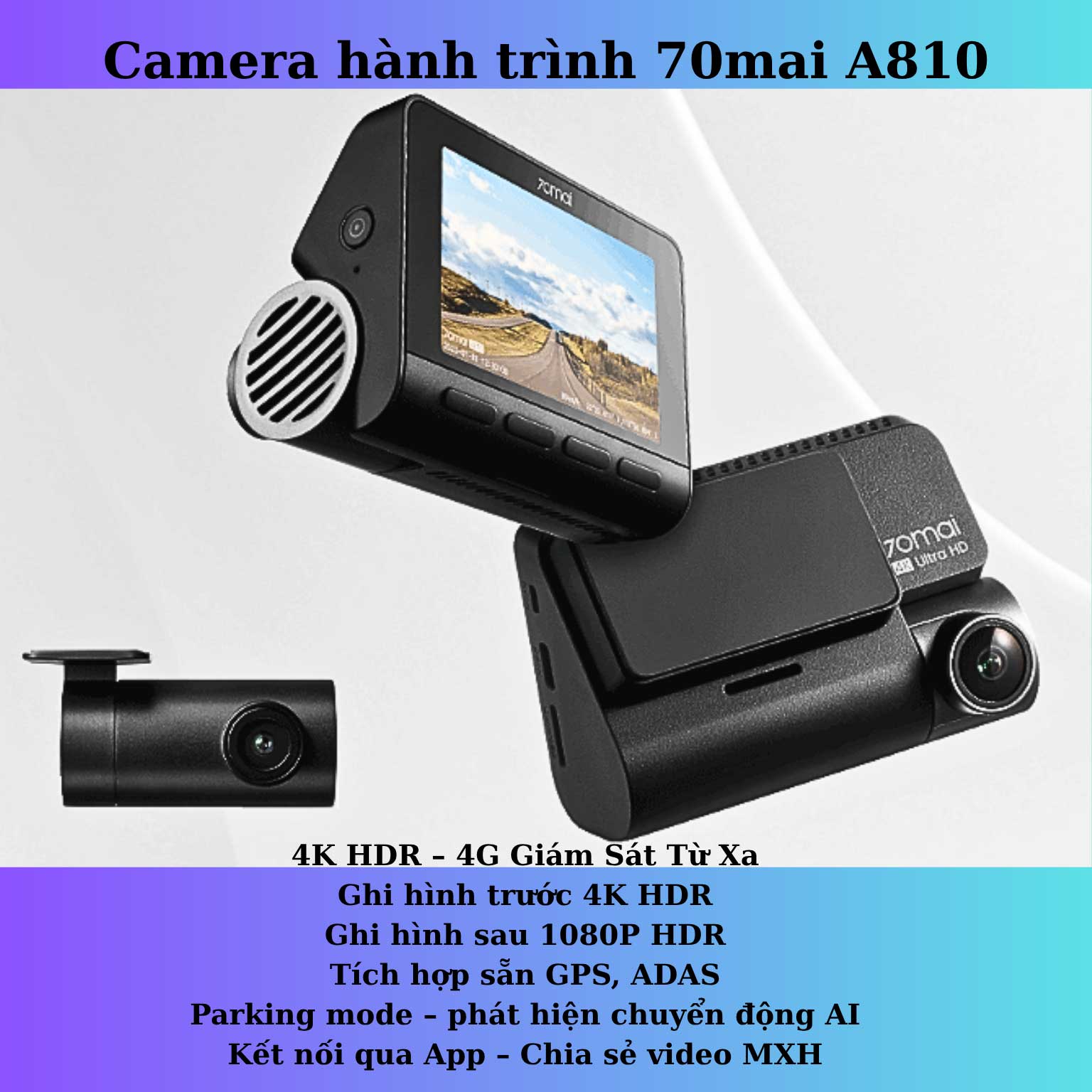 - 70mai A810: Bản Cam Trước: 4.290.000đ/ Bản Full Cam Trước Sau: 5.290.000đ.
