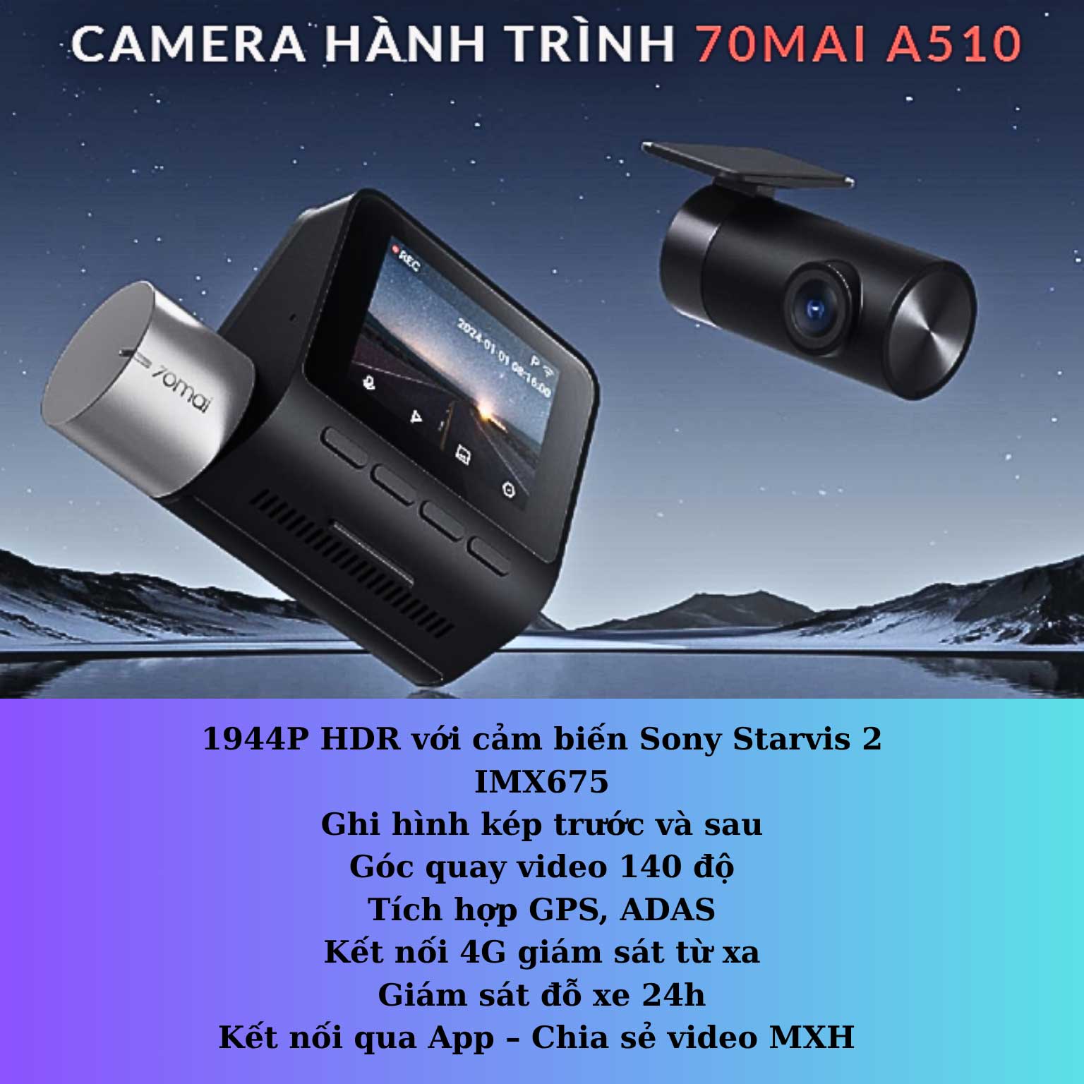 - Tính năng: ADAS, GPS tích hợp, quay ban đêm HDR.