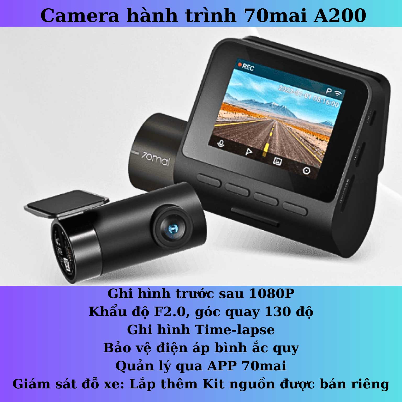 - 70mai A200: Bản Cam Trước: 1.790.000đ/ Bản Full Cam Trước Sau: 2.190.000đ
