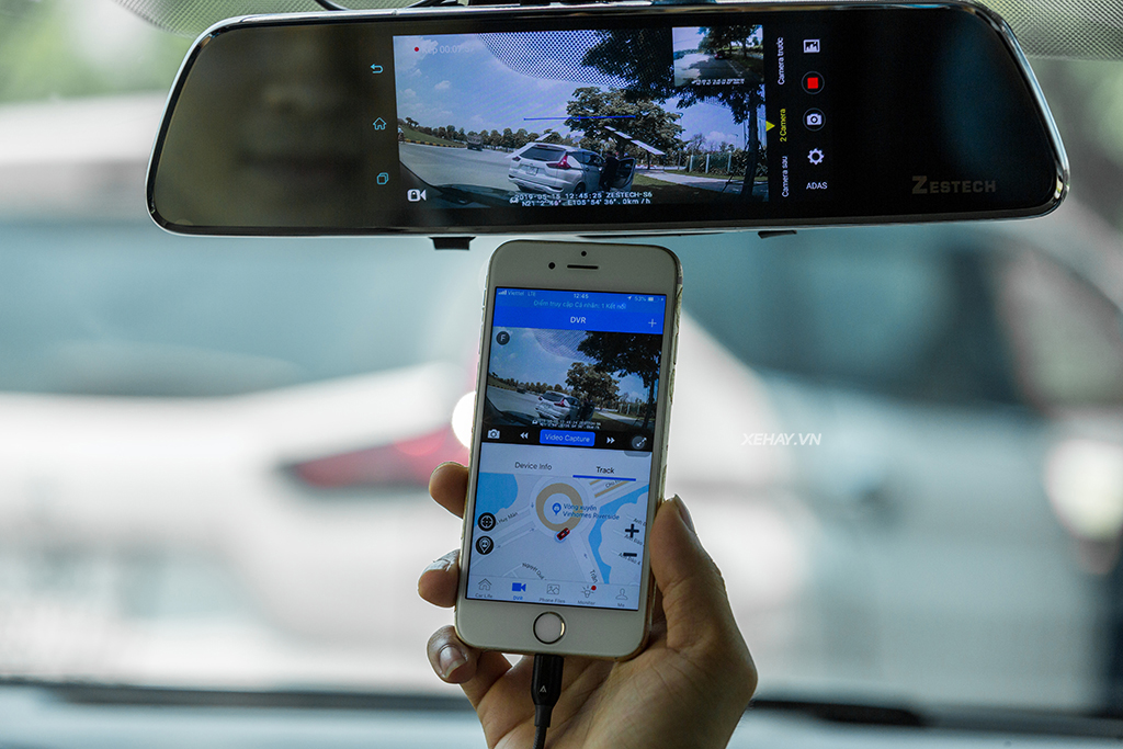 - Ghi hình phía trước xe: có một mắt được gắn trực tiếp trên thiết bị, thực hiện chức năng lưu lại hành trình phía trước đầu xe. Hướng quay của cam này phụ thuộc vào góc nghiêng của gương