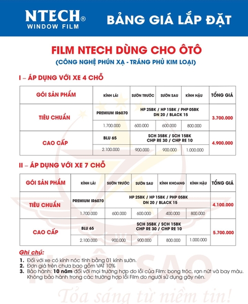 - Cuối cùng, phim còn giúp một phần cách âm chống ồn. Tăng phẩm mỹ xe, dán phim cách nhiệt Ntech làm tăng thêm sự sang trọng, thanh lịch, kín đáo cho xe.