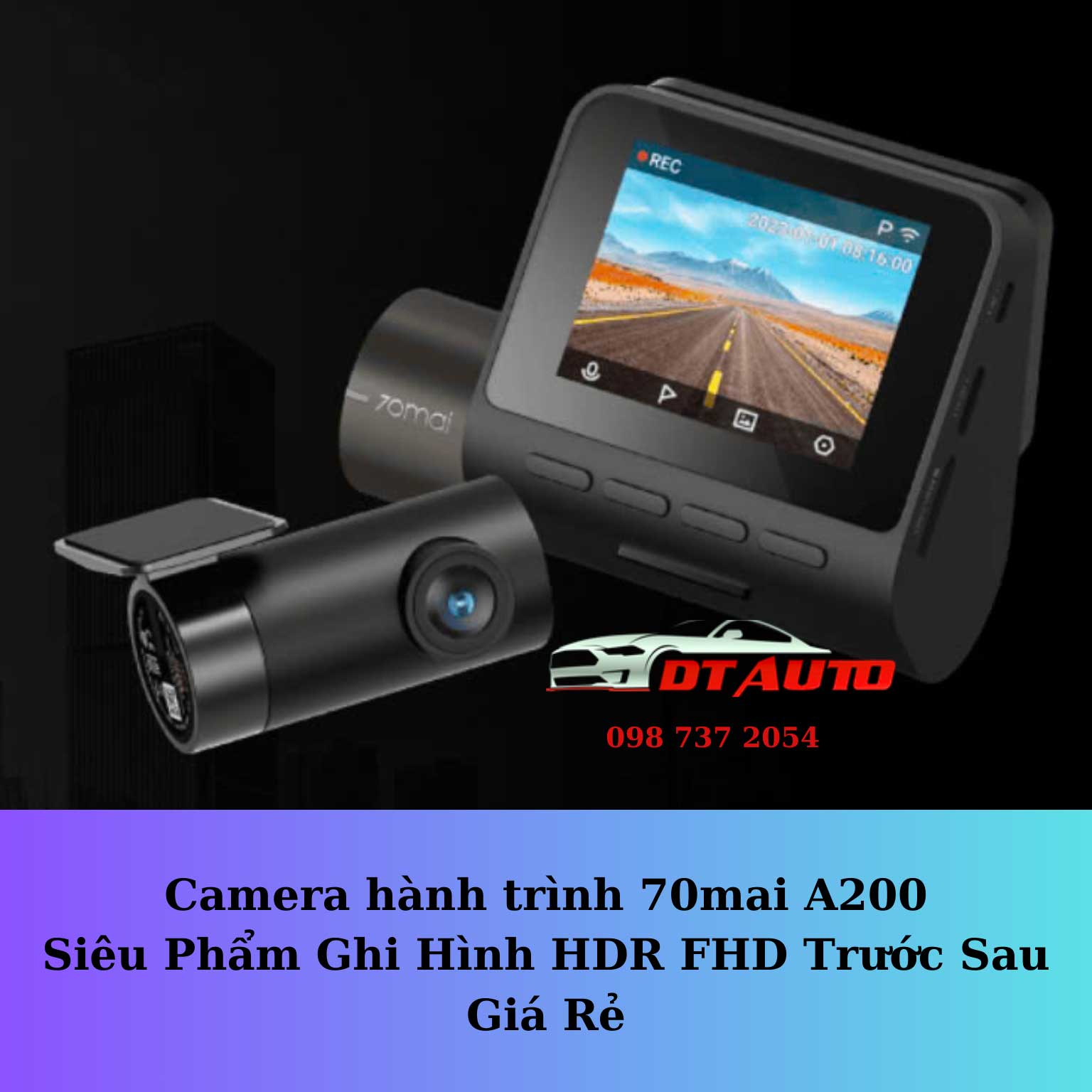 📷 Camera hành trình 70mai A200 – Giá lắp đặt: 2.000.000 VNĐ( cam trước và sau)