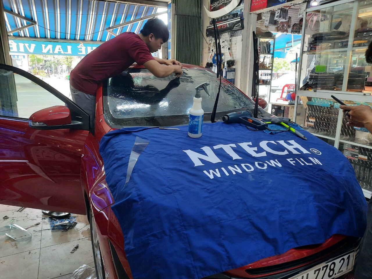 Nhân Viên Lọt Phim Cách Nhiệt Cũ Để Dán Phim Cách Nhiệt DT Auto Chuyên Phụ Kiện Xe Hơi