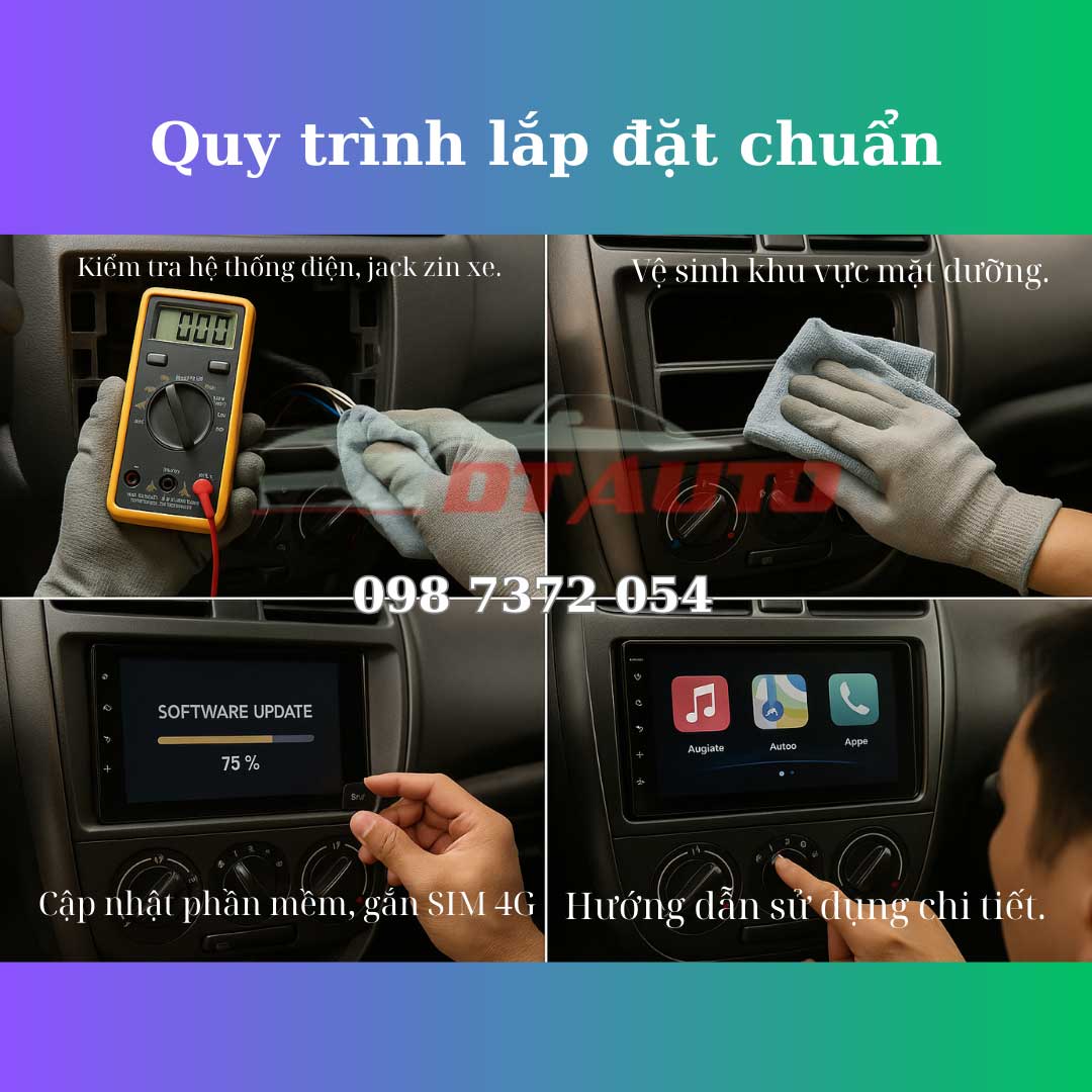 Với hơn 7 năm kinh nghiệm trong ngành phụ kiện ô tô, đội ngũ kỹ thuật viên của DTauto luôn đặt sự hài lòng của khách hàng làm trọng tâm. Chúng tôi không chỉ cung cấp màn hình Android chất lượng, mà còn đồng hành lâu dài với khách hàng qua dịch vụ hỗ trợ, hướng dẫn sử dụng và xử lý mọi sự cố sau lắp đặt một cách nhanh chóng – tận nơi.