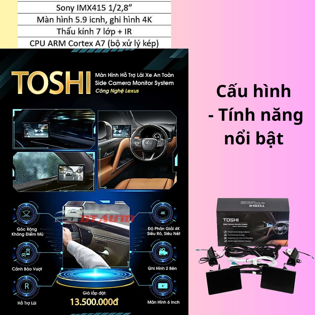 Gương điện tử Toshi là một trong những sản phẩm công nghệ tiên tiến được thiết kế nhằm thay thế hoàn toàn gương chiếu hậu truyền thống trên xe ô tô. Được tích hợp camera hành trình và màn hình hiển thị cảm ứng, gương điện tử Toshi mang đến một trải nghiệm lái xe hoàn toàn mới, an toàn và hiện đại.