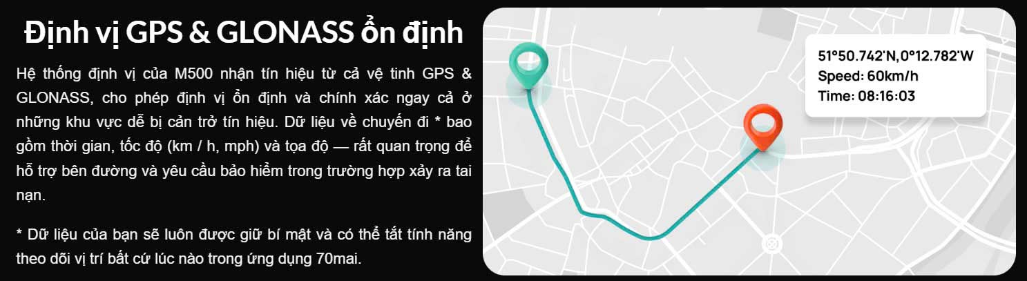 Sau khi dừng xe, hãy bật chức năng giám sát đỗ xe. Nếu cảm biến G tích hợp phát hiện bất kỳ rung lắc hoặc va chạm đột ngột nào, M500 sẽ tự động bắt đầu ghi để nắm bắt mọi sự cố tiềm ẩn