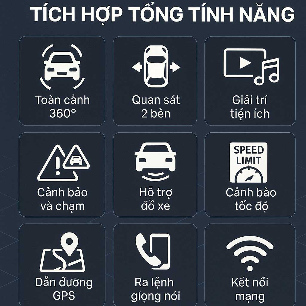 | Tích hợp camera 360 | Có camera AHD 360 hoặc AI 360 tích hợp sẵn | Phải mua và lắp thêm, chất lượng kém |