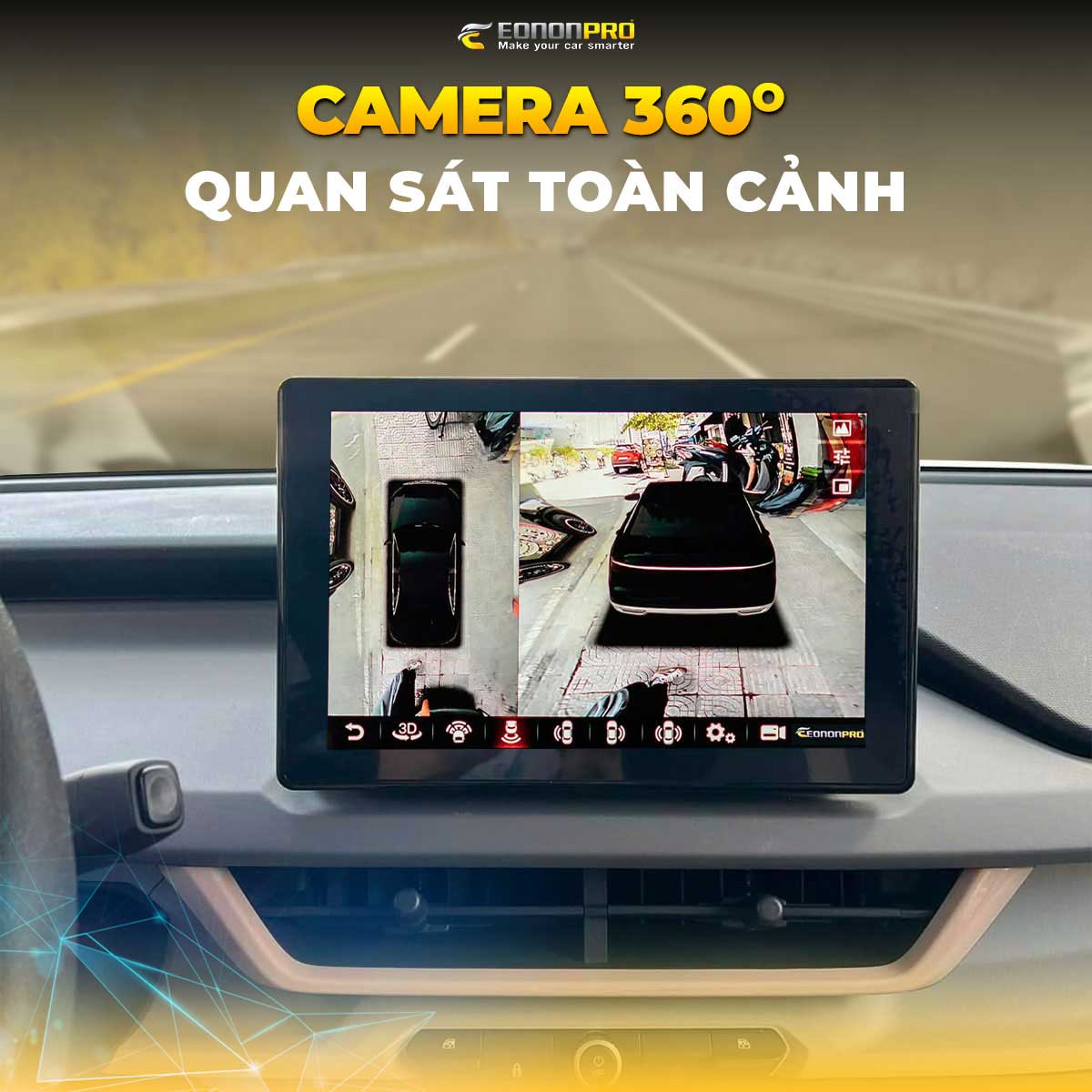 Màn hình EVP hỗ trợ tích hợp camera lùi và hệ thống camera 360 độ giúp tăng cường an toàn khi lái xe. Người lái có thể dễ dàng quan sát mọi hướng xung quanh xe khi lùi hoặc đỗ xe nhờ vào các góc nhìn khác nhau từ camera. Khi xe vào số lùi, màn hình sẽ tự động hiển thị hình ảnh từ camera lùi, giúp người lái quan sát rõ ràng các vật cản phía sau, hạn chế va chạm không mong muốn. Bên cạnh đó, hệ thống camera 360 độ mang đến cái nhìn toàn cảnh xung quanh xe, hỗ trợ đỗ xe an toàn hơn ngay cả trong không gian hẹp.