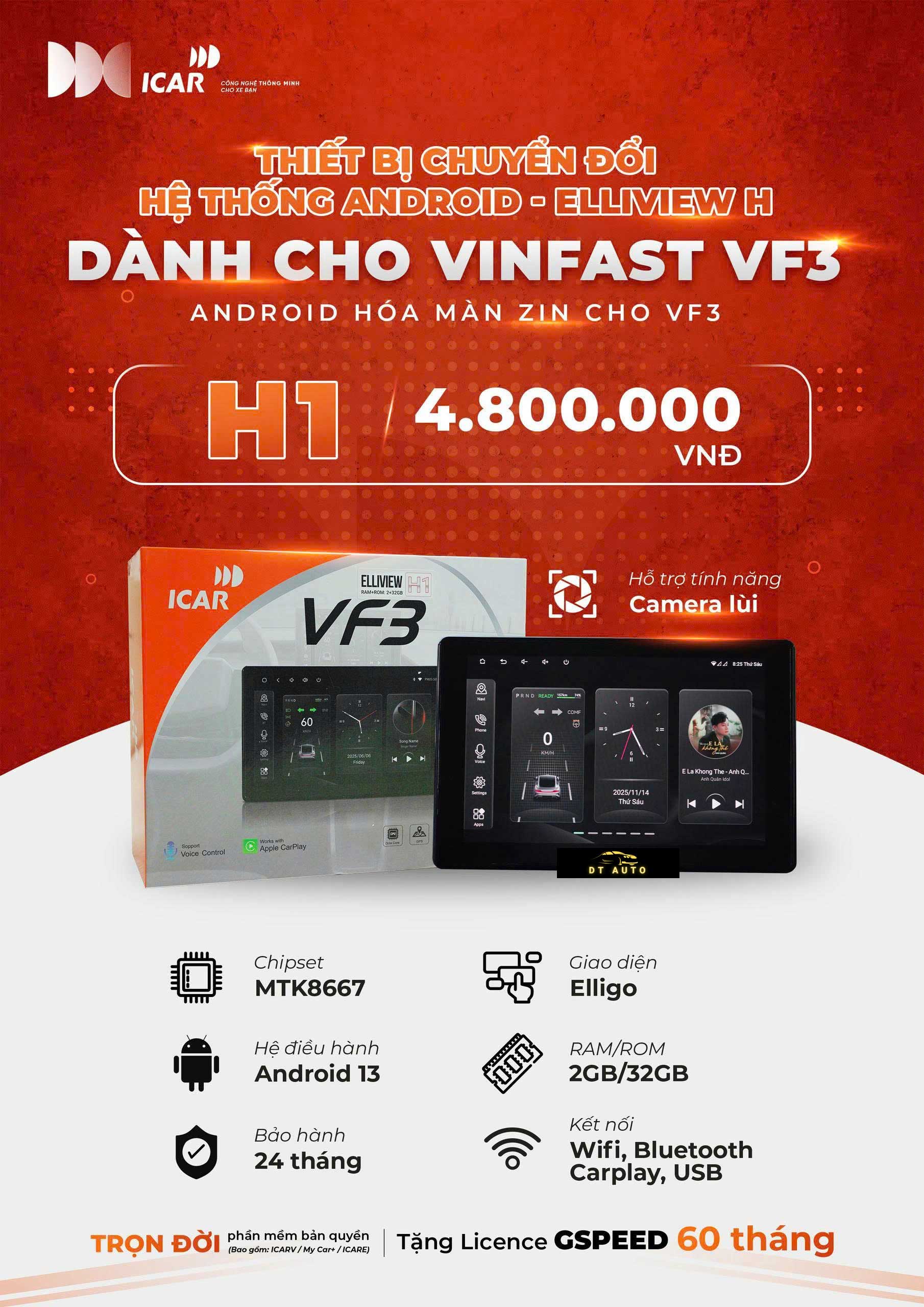 DTauto là đơn vị chuyên nâng cấp màn hình và phụ kiện dành cho VinFast VF3: