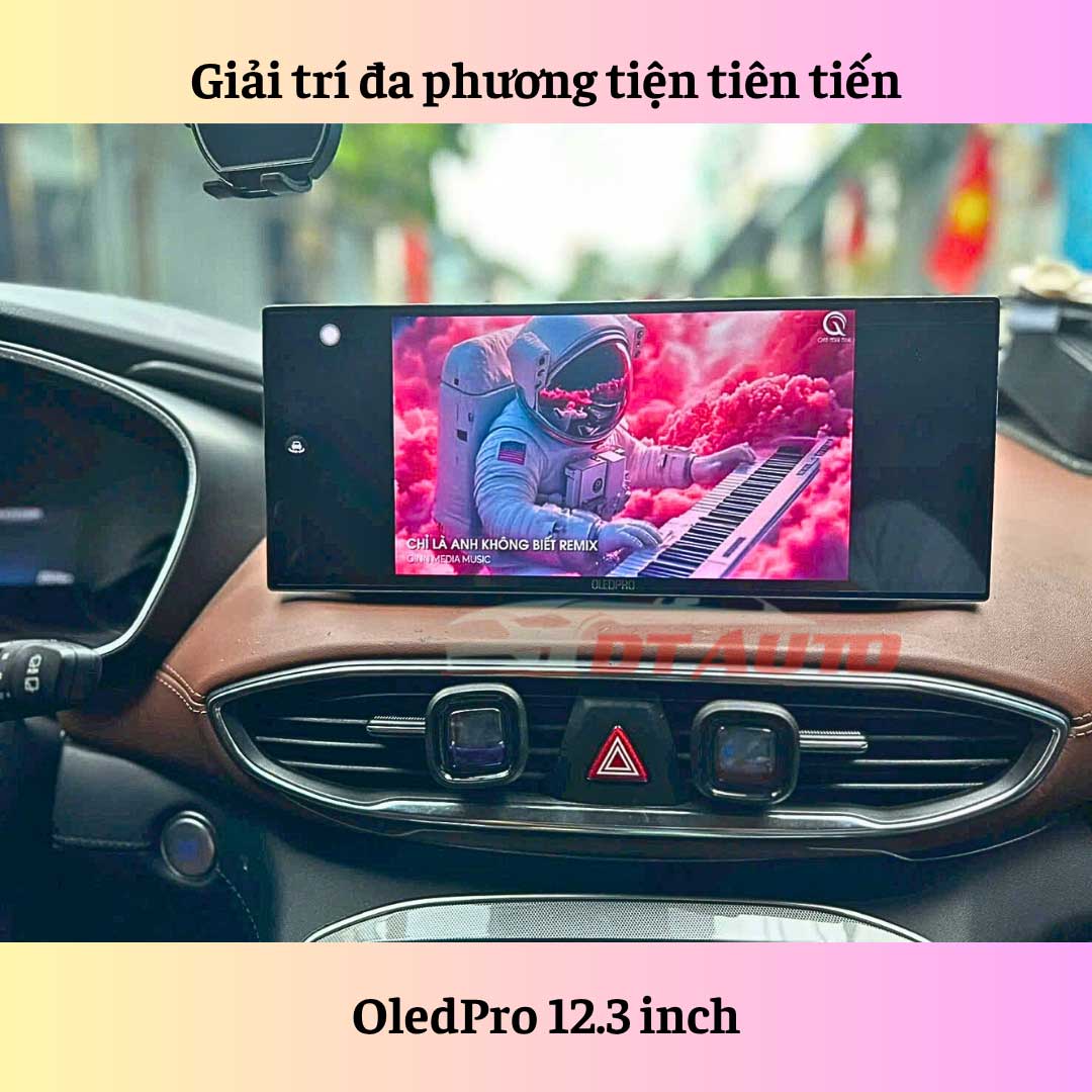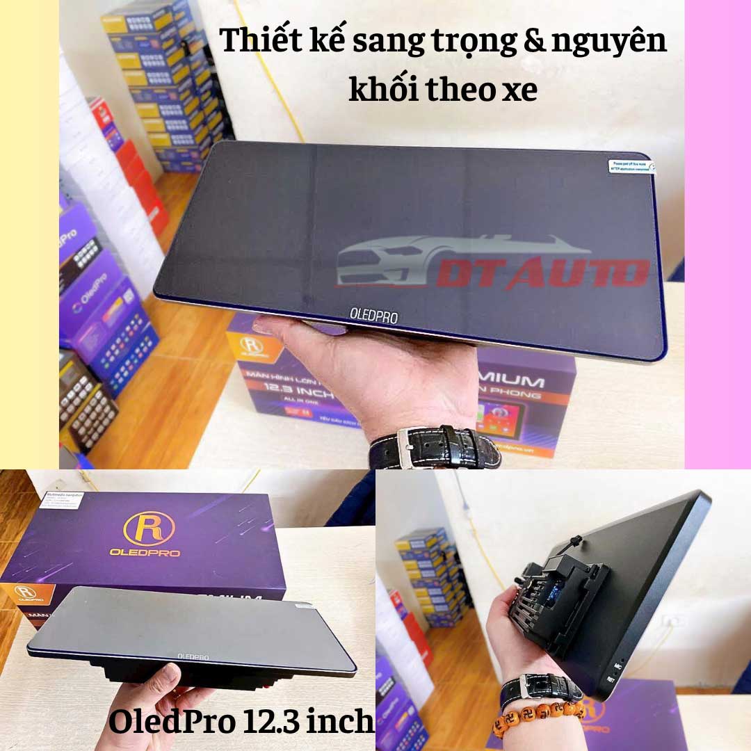 Một điểm làm nên sự khác biệt là OledPro 12,3 inch được thiết kế nguyên khối, không dùng mặt dưỡng rời, phù hợp form xe có cụm màn hình nhô cao (như Mazda, SantaFe, Toyota Cross…) . Thiết kế nằm ngang, hình chữ nhật, cảm giác của màn hình lớn giống các dòng xe cao cấp.