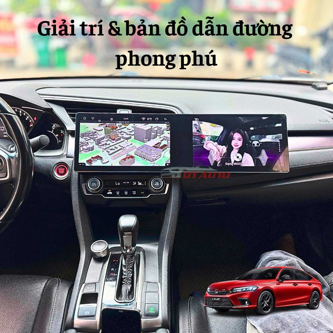 Màn hình đôi 10″ + 10″ với viền mỏng tạo cảm giác cao cấp và tích hợp hài hòa vào nội thất Honda Civic