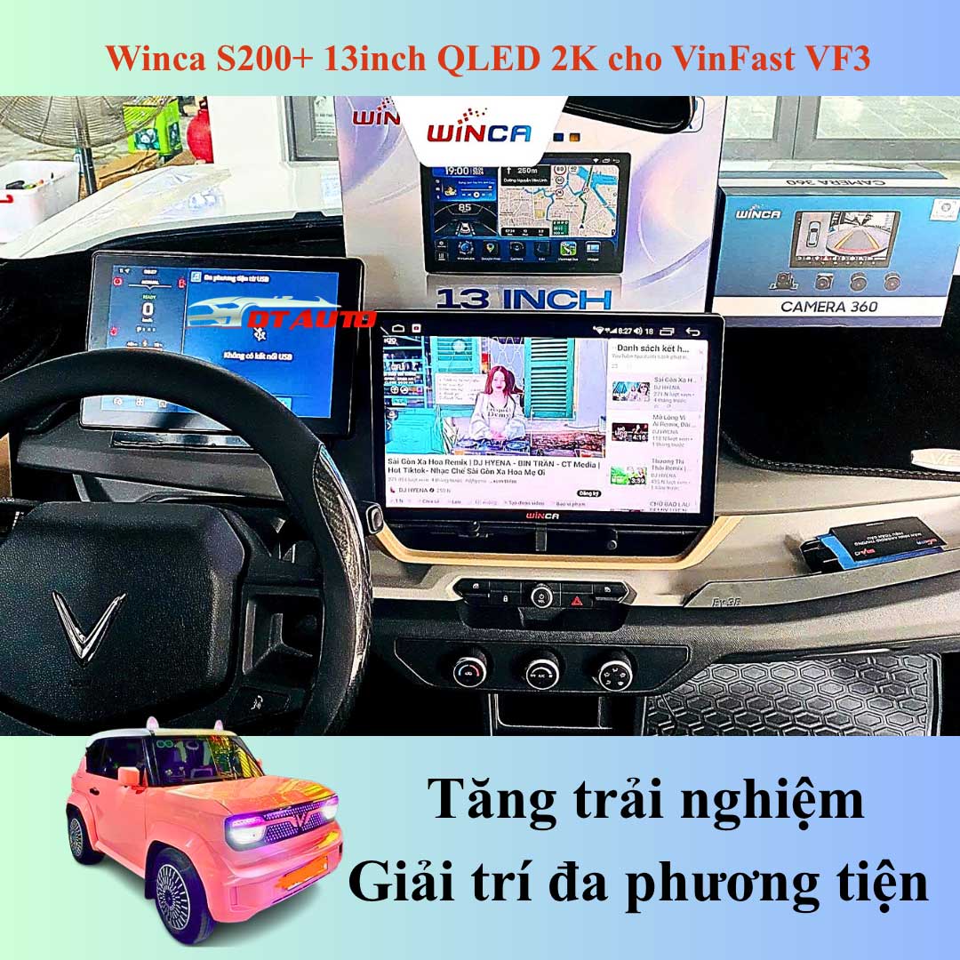 Nổi bật trong phân khúc hiện nay chính là dòng màn hình Android Winca S200+ 13inch QLED 2K – sản phẩm được phân phối và lắp đặt chính hãng tại DTauto Thủ Đức. Đây không chỉ là một thiết bị giải trí, mà còn là giải pháp nâng cấp toàn diện cho khoang nội thất VF3, mang lại trải nghiệm lái xe thông minh, an toàn và tiện nghi vượt trội.