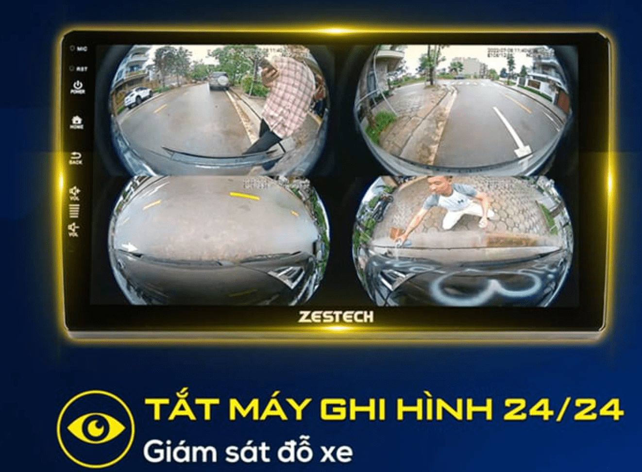 Màn hình Zestech được tích hợp với một hệ thống camera 360 độ, giúp quay hình toàn cảnh xung quanh xe. Loại bỏ toàn bộ các điểm mù và góc khuất, camera này đặc biệt hữu ích trong việc giám sát xung quanh xe. Một tính năng nổi bật là khả năng ghi hình liên tục 24/24 ngay cả khi xe đã tắt máy.