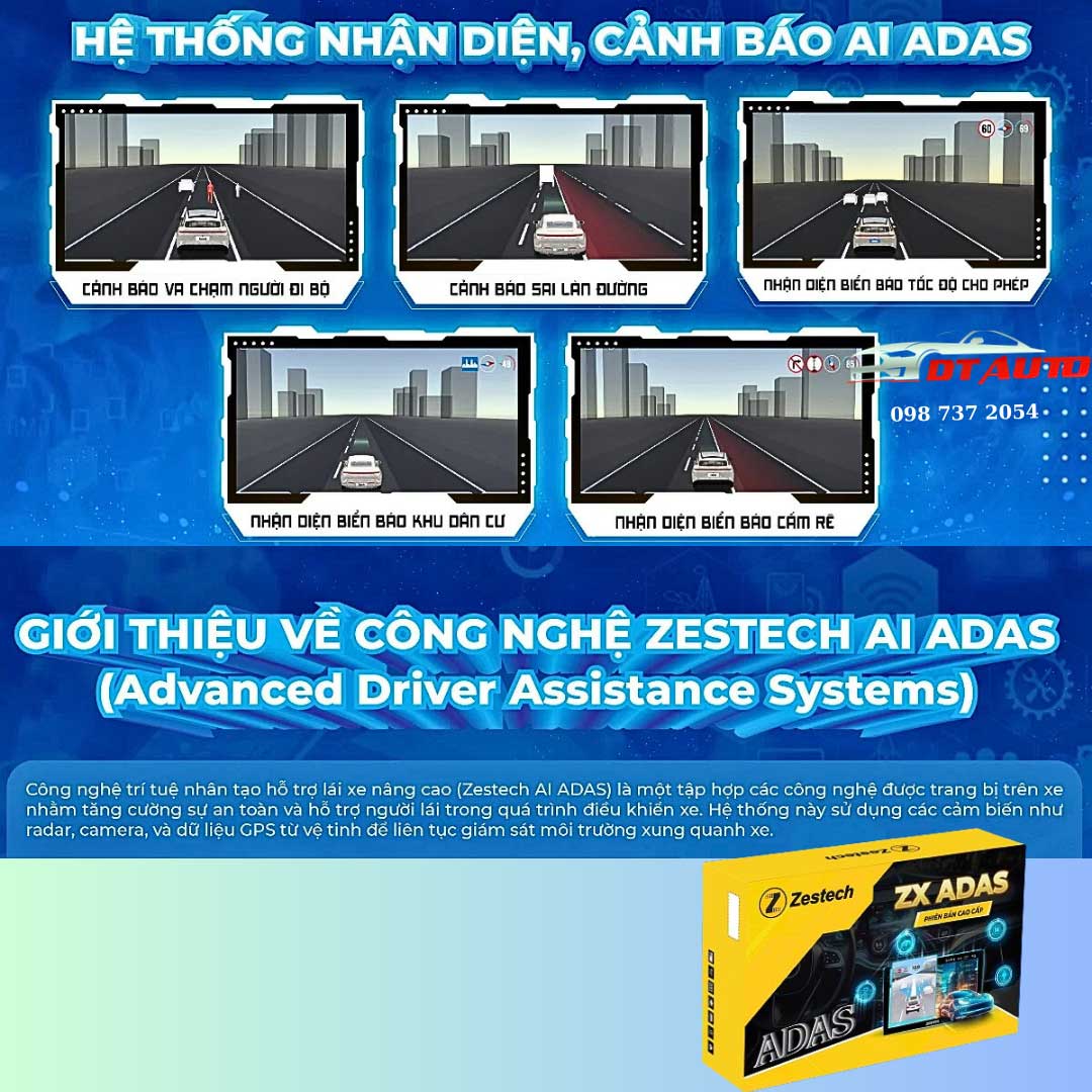 Với Zestech ZX ADAS Cao cấp, Zestech đã chú trọng phát triển tính năng AI ADAS để mang đến trải nghiệm lái xe an toàn cho người dùng. Hệ thống cảm biến, camera và trí tuệ nhân tạo, cung cấp các cảnh báo cần thiết: