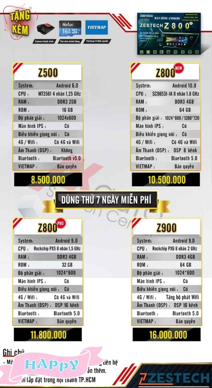 Bảng giá màn hình android ô tô Zestech - Z500, Z800, Z800pro, Z900