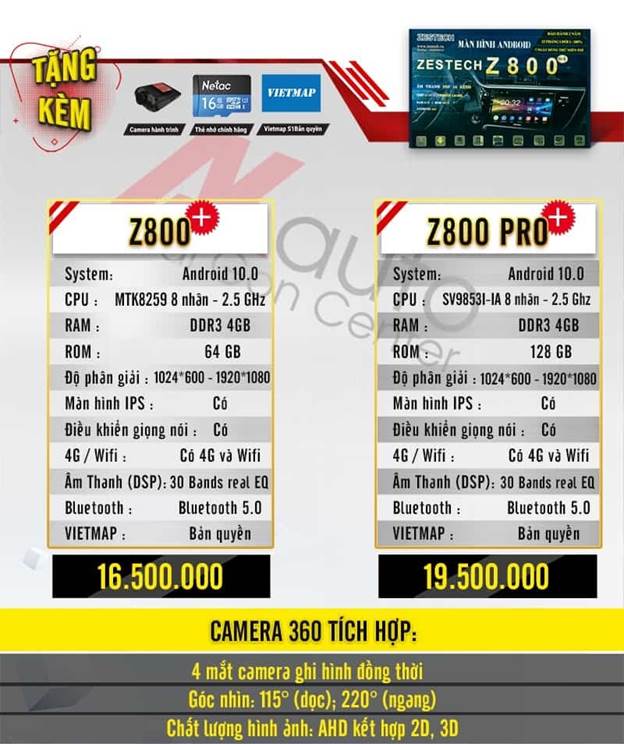 Bảng giá màn hình android ô tô Zestech - Z800plus, Z800pro plus