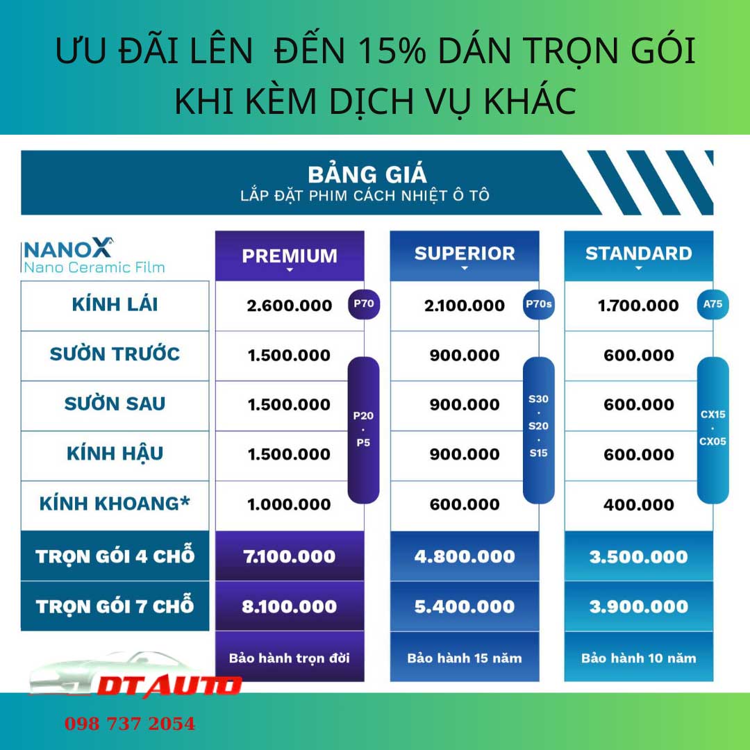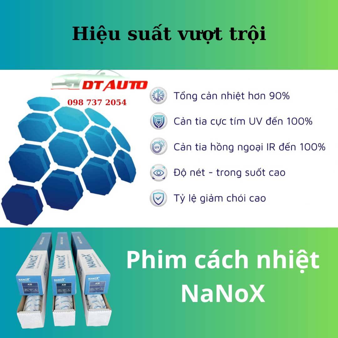 Dán phim cách nhiệt xe ô tô NanoX đạt tổng cản nhiệt trên 90%, loại 100% UV và IR, độ trong suốt cao, giảm chói loá, đảm bảo tầm nhìn. Bảo hành trọn đời