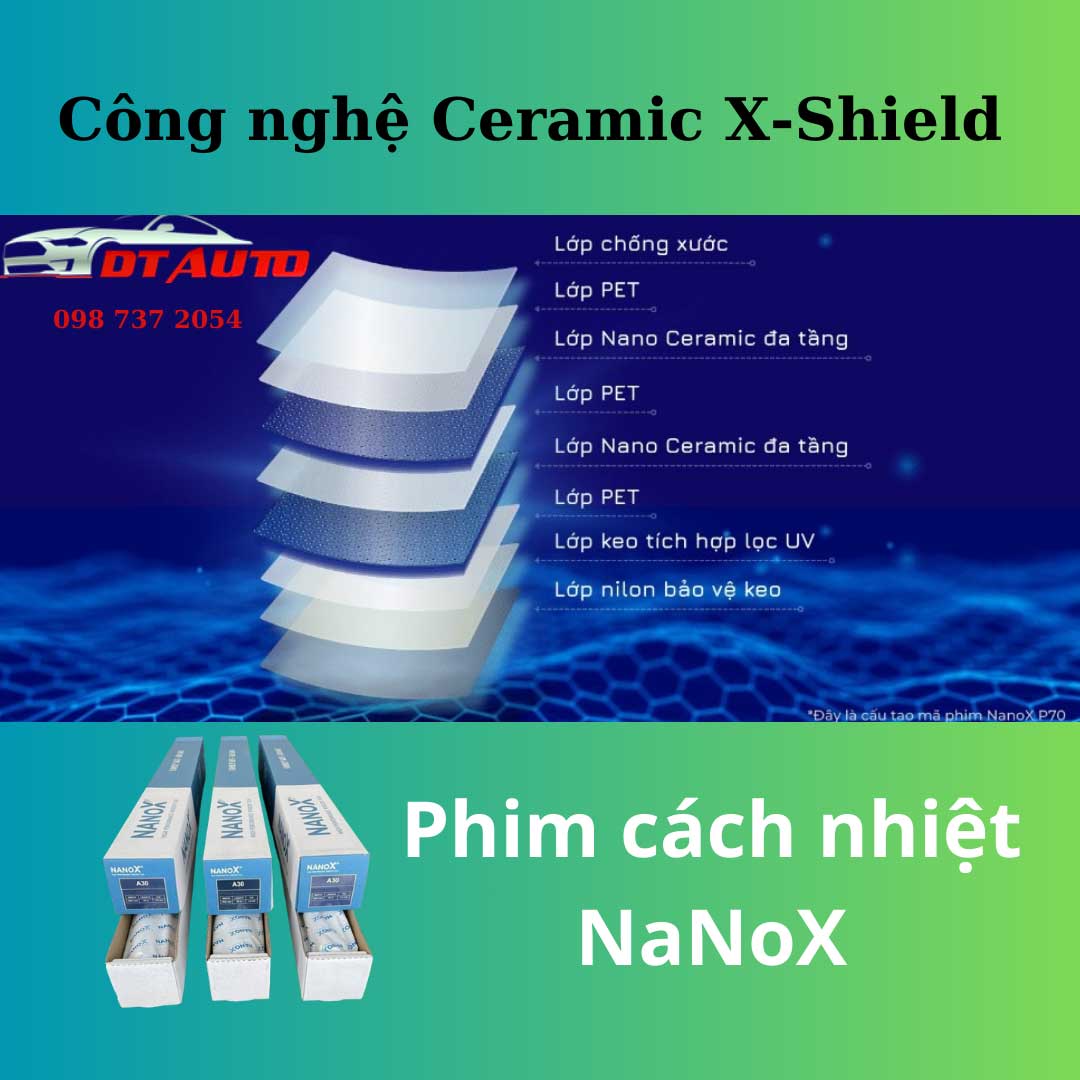 Nano Ceramic X-Shield là công nghệ sản xuất phim cách nhiệt được phát triển bởi NanoX và đội ngũ chuyên gia Hàn Quốc dựa trên phương pháp tiếp cận toàn diện.Ceramic là một loại gốm kỹ thuật hoá, ưu điểm độ bền cao, cách nhiệt hiệu suất cao, cách điện, an toàn và thân thiện.