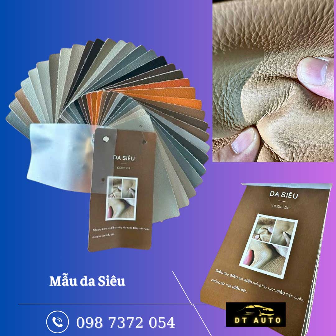 DTauto đem đến bạn bọc ghế giả da cao cấp kết cấu tương tự nhưng chất liệu tốt hơn Simili với giá thành hợp lý là lựa chọn không thể bỏ qua. Chất liệu này không được đánh giá cao so với các dòng khác, nó chỉ rẻ về giá thành và phù hợp với các dòng xe chạy dịch vụ hoặc ít đi.