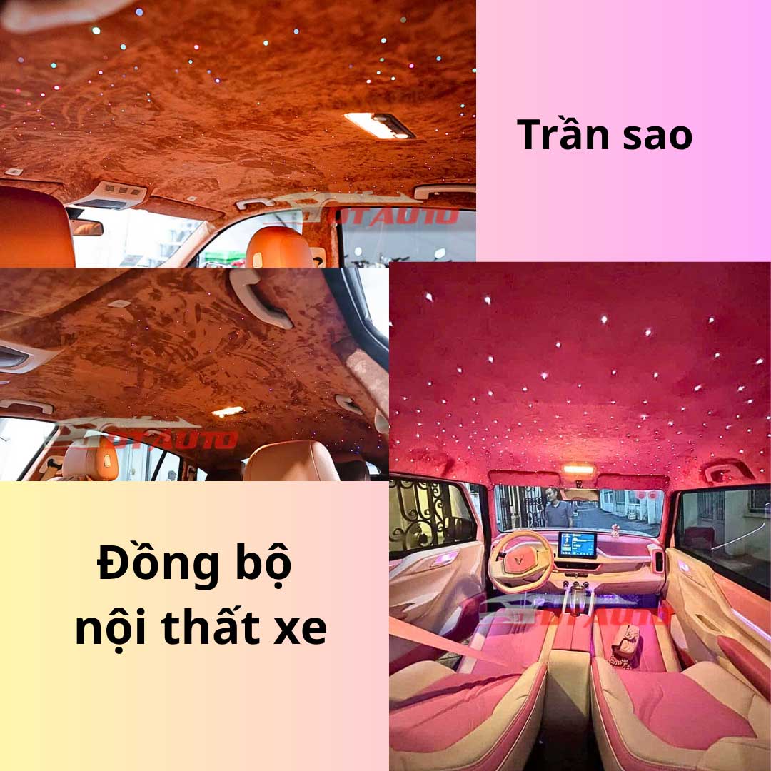 Với hàng trăm kiểu phối da – màu LED – bố trí sao khác nhau, mỗi trần độ là một bản thiết kế riêng biệt, thể hiện cá tính riêng của chủ xe.