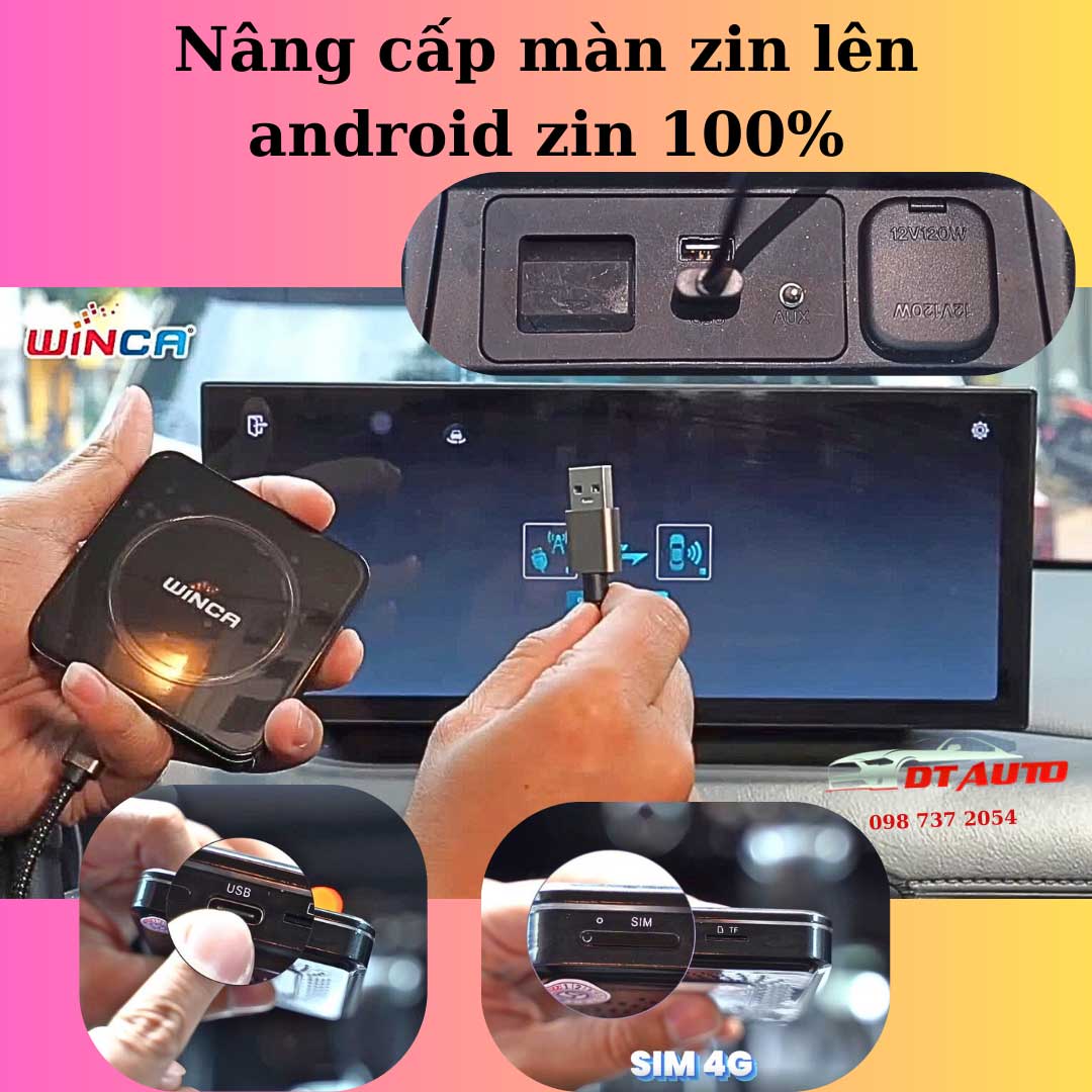 - Winca Android Box là thiết bị ngoại vi được kết nối với màn hình zin thông qua cáp USB