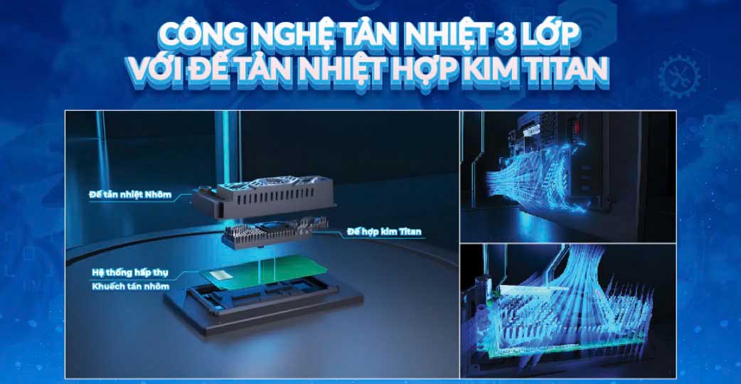 - Đế hợp kim Titan: Xả nhiệt siêu tốc, duy trì nhiệt độ lý tưởng, đảm bảo hệ thống vận hành mượt mà suốt hành trình dài.