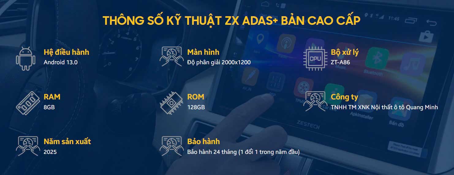 Màn hình Zestech ZX ADAS+ 360 Bản Cao cấp tích hợp công nghệ hỗ trợ lái xe ADAS tiên tiến, giúp người lái nhanh chóng nhận biết các tình huống nguy hiểm trên đường. Trong đó, bao gồm: