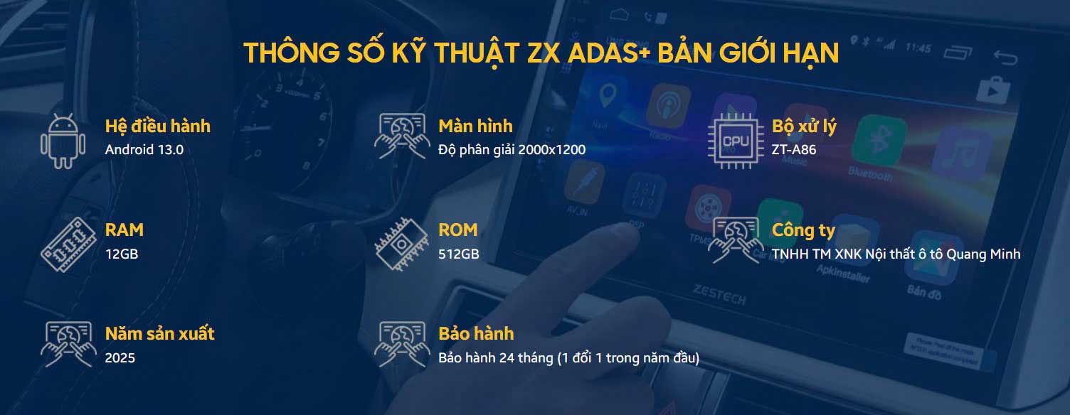 Màn hình Zestech ZX ADAS+ 360 Bản Giới hạn tích hợp công nghệ hỗ trợ lái xe ADAS tiên tiến, giúp người lái nhanh chóng nhận biết các tình huống nguy hiểm trên đường. Trong đó, bao gồm: